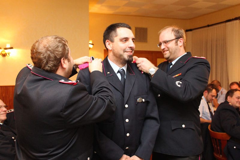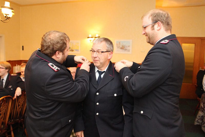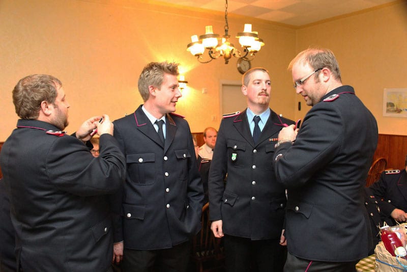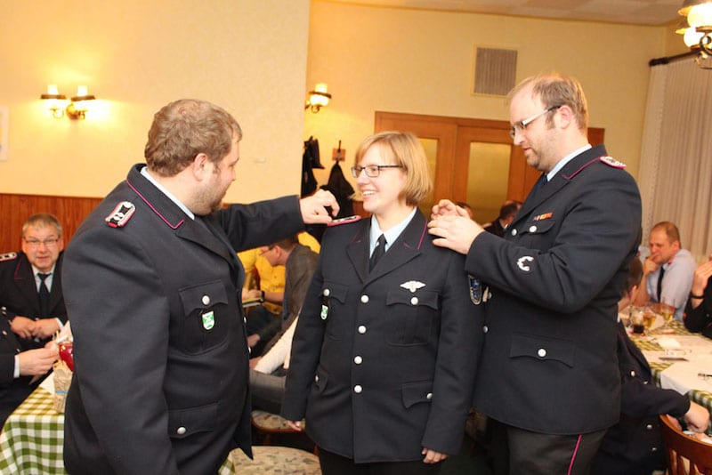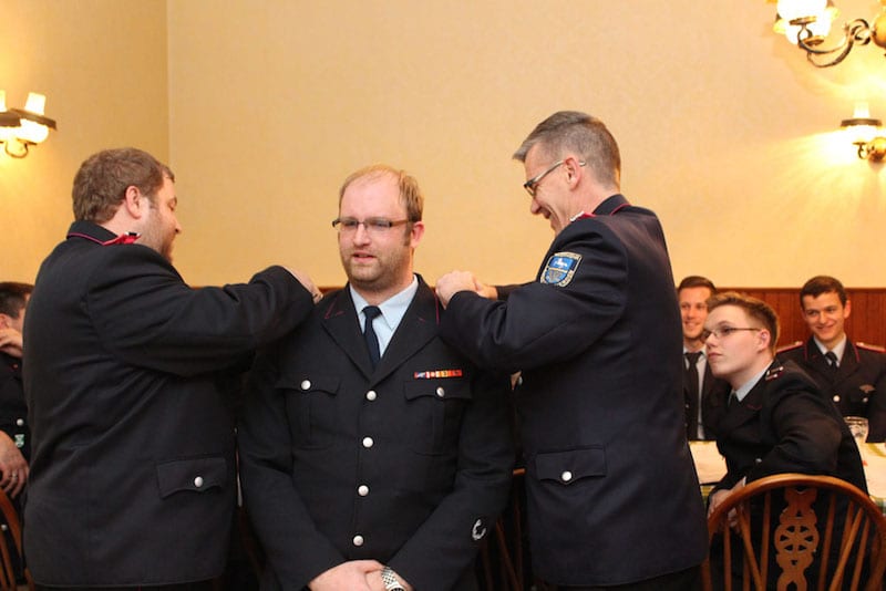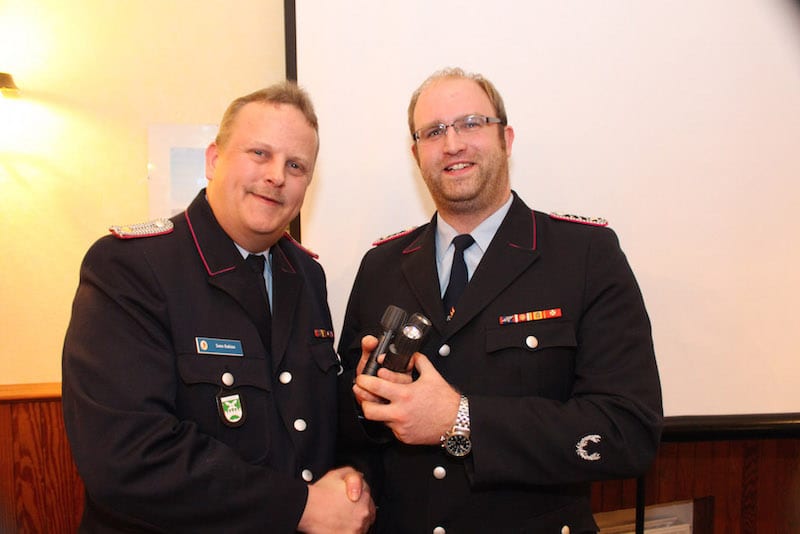 Für die gewissenhafte und ständige Mitarbeit wurde Michael Schritt zum Ersten Hauptfeuerwehrmann befördert. Auch der Ortsbrandmeister Torsten Kohlmann konnte sich freuen, er wurde zum Hauptlöschmeister befördert.