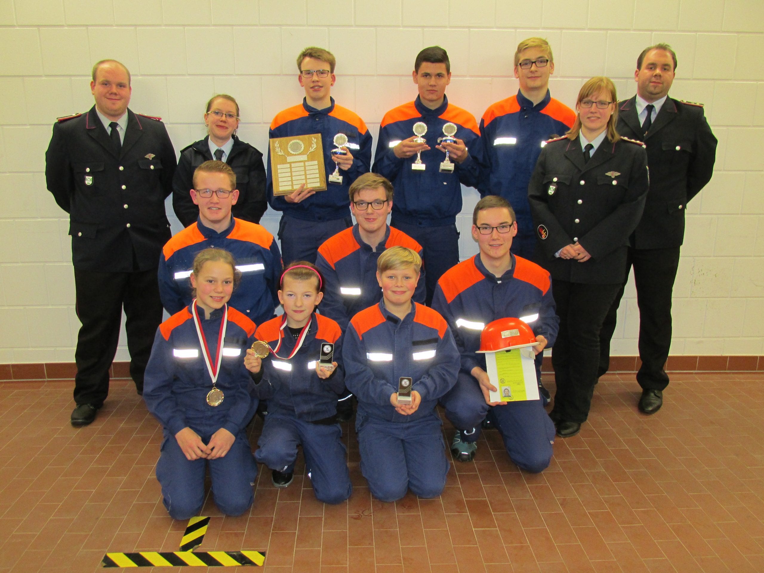 Jugendfeuerwehrmitglied des Jahres 2016 wurden mit 44 besuchten der 46 gebotenen Dienste Philipp von Husen sowie Niko Steckel. Beide erhielten dafür einen Pokal und einen Eintrag auf der im Feuerwehrhaus aushängenden Plakette. Philipp von Husen hat es damit geschafft, bereits fünf Mal Dienstfleißigster zu sein, was einen besonderen Applaus verdiente. Rieke Rupp und Zoe Treydel bekamen für 43 besuchte Dienste je eine Medaille. Aktivste bei Veranstaltungen wurden Eric Häger und Zoe Treydel; beide erhielten einen kleinen Pokal. Für langjährige Mitgliedschaft konnte Niko Steckel mit einem weiteren Pokal ausgezeichnet werden. Er ist seit fünf Jahren aktives Mitglied in der Jugendfeuerwehr, was zahlreiche Stempel von Veranstaltungen auf der Rückseite seines Mitgliedsausweises belegen.