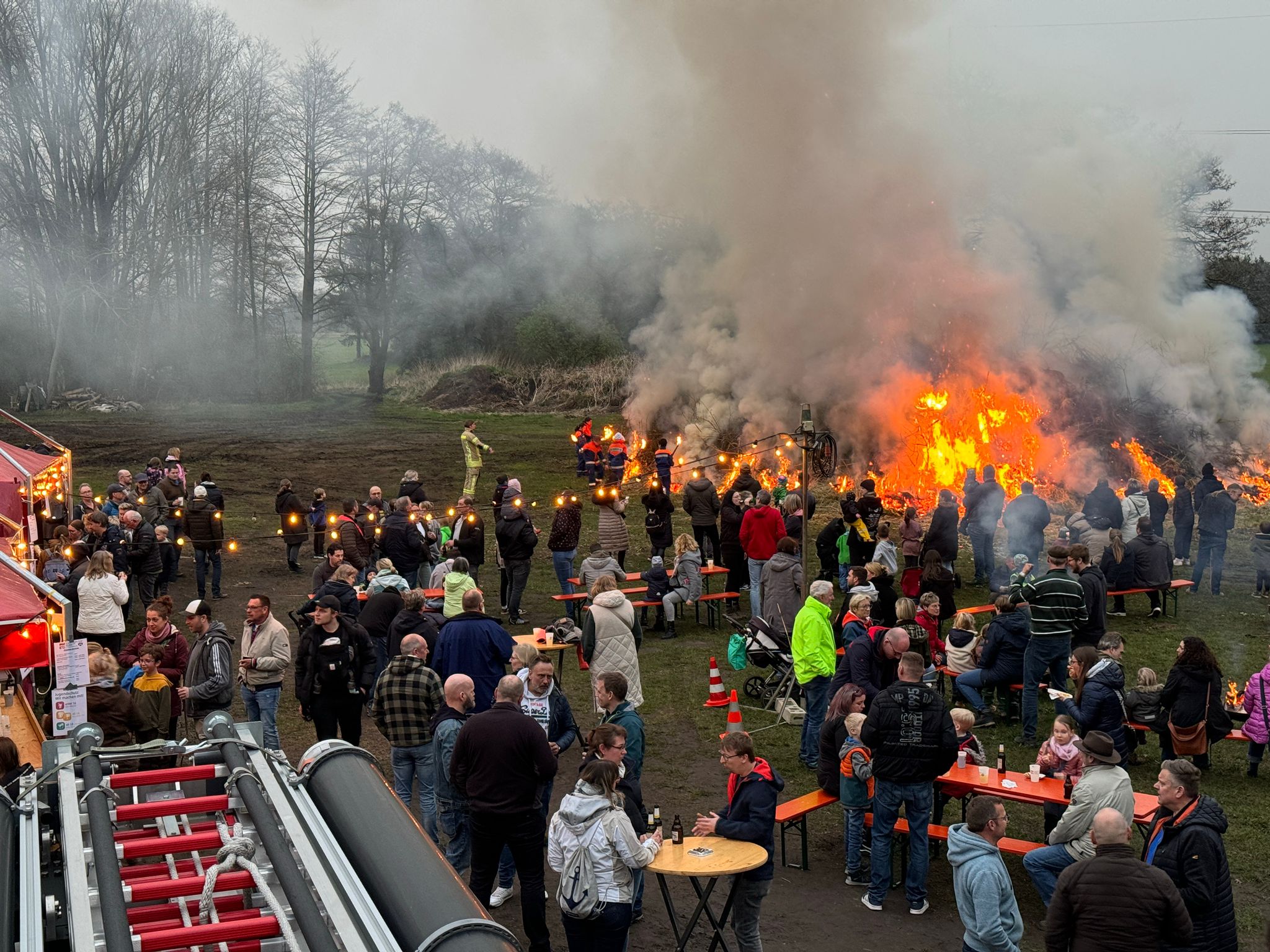 Ortsbrandmeister Dr. Thorben Helmers betont die Notwendigkeit dieser Maßnahme: „Wir sind sehr froh, so schnell einen Ersatzplatz gefunden zu haben. Um die Nachbarschaft vor übermäßiger Qualmbildung zu schützen, müssen wir bei der Qualität des Schnittguts strenger sein als bisher. Wir bitten dringend darum, von der Anlieferung frischer Grünbüsche abzusehen. Diese können und dürfen wir in diesem Jahr nicht annehmen.“
