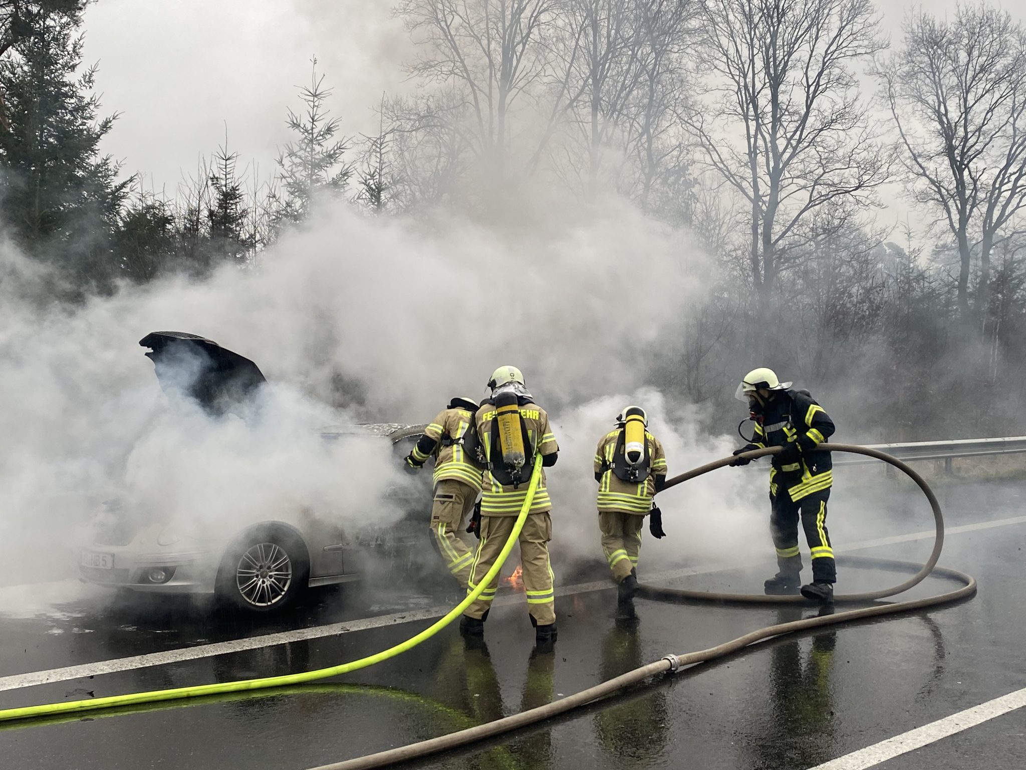 Am Sonntagmittag rückte die Ortsfeuerwehr Langwedel zu einem Fahrzeugbrand auf die Autobahn 27 in Fahrtrichtung Bremen aus. Laut Meldung der Leitstelle sollte ein Mercedes in Brand stehen. Schon auf Sicht konnten die Einsatzkräfte eine schwarze Rauchsäule über der Autobahn erkennen. Bei Eintreffen stand der PKW dann in Vollbrand. Mit zwei Trupps unter Atemschutz wurden die Flammen zunächst mit Wasser niedergeschlagen, anschließend wurde der PKW mit Schaum geflutet. Die A27 war während der Löscharbeiten für rund 2 Stunden voll gesperrt. Verletzt wurde niemand.